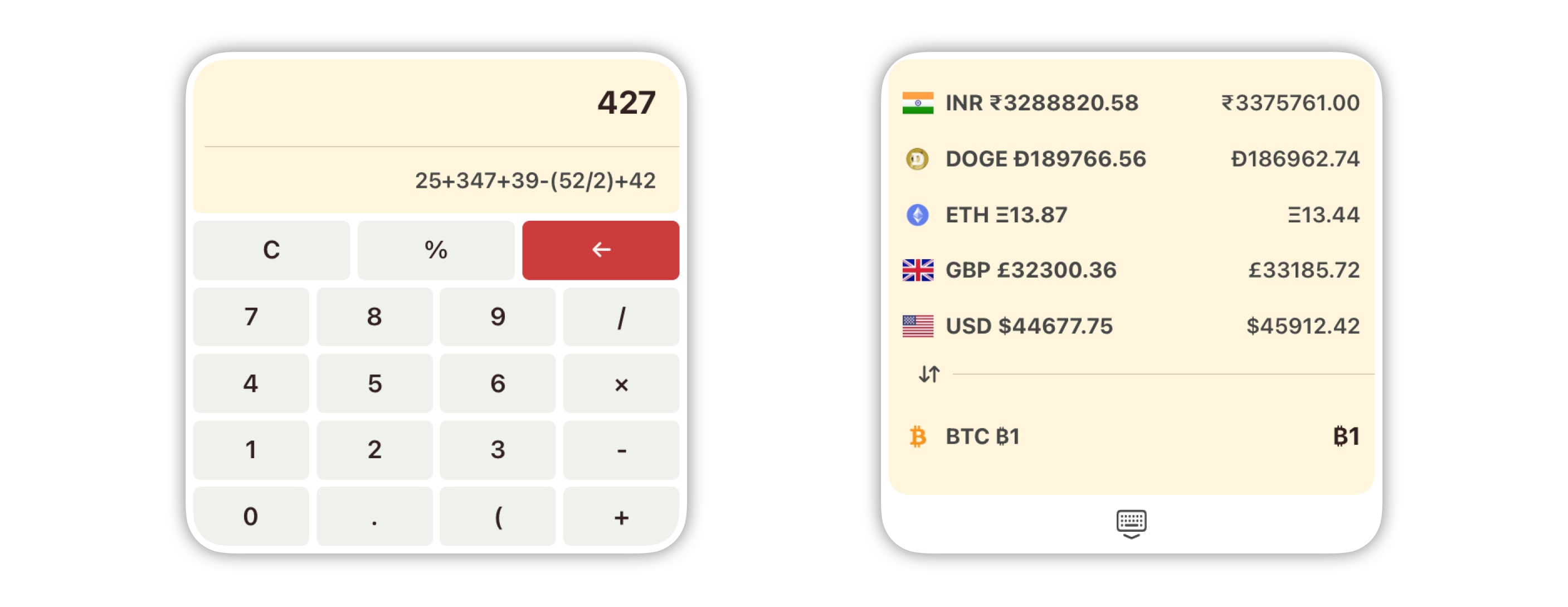 A unique approach allows you to begin calculations from the home screen widget, finish in the app and quickly return without losing your context.
