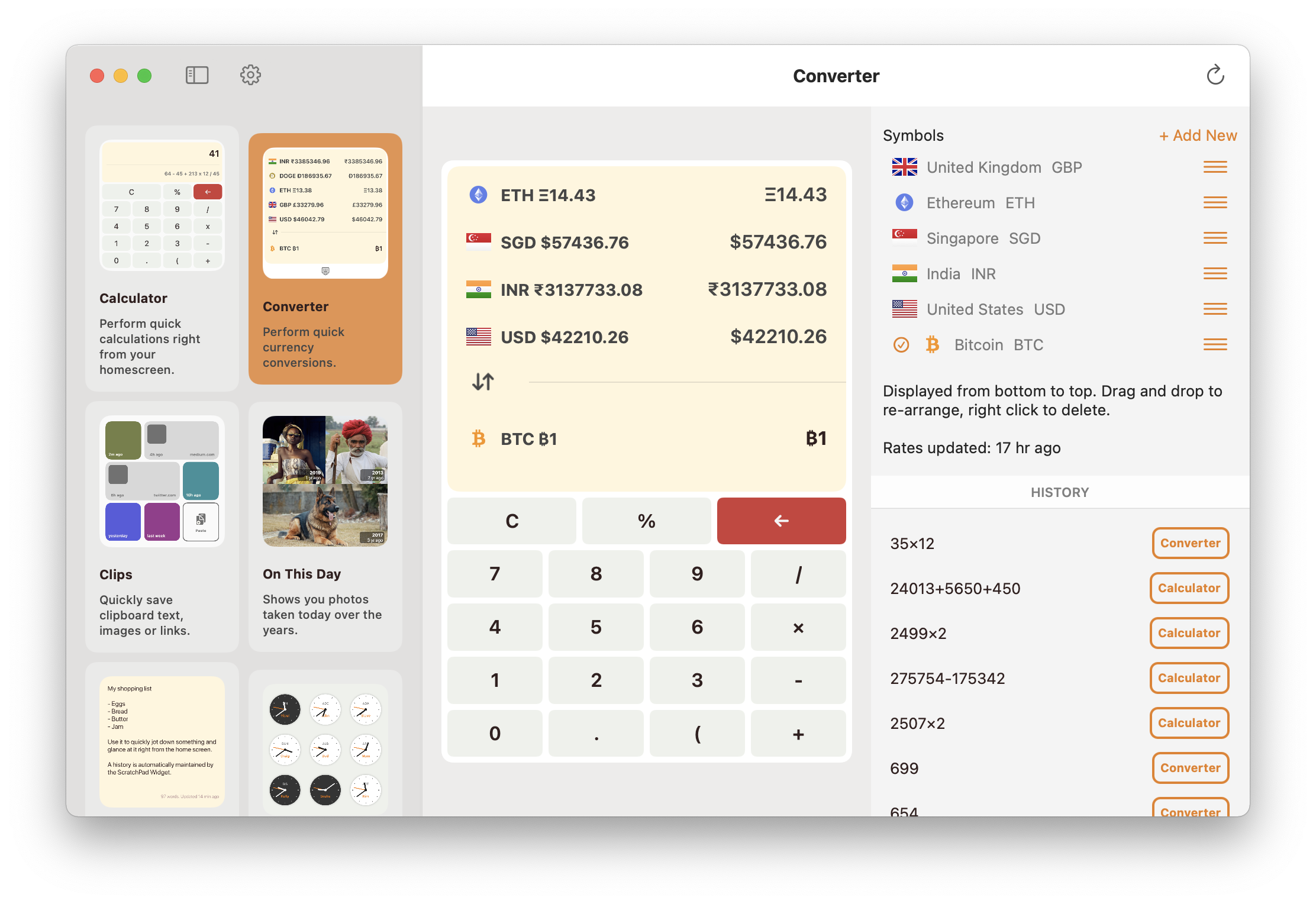 Calculator and converter widgets are free forever, try the rest with a free 3-day trial.